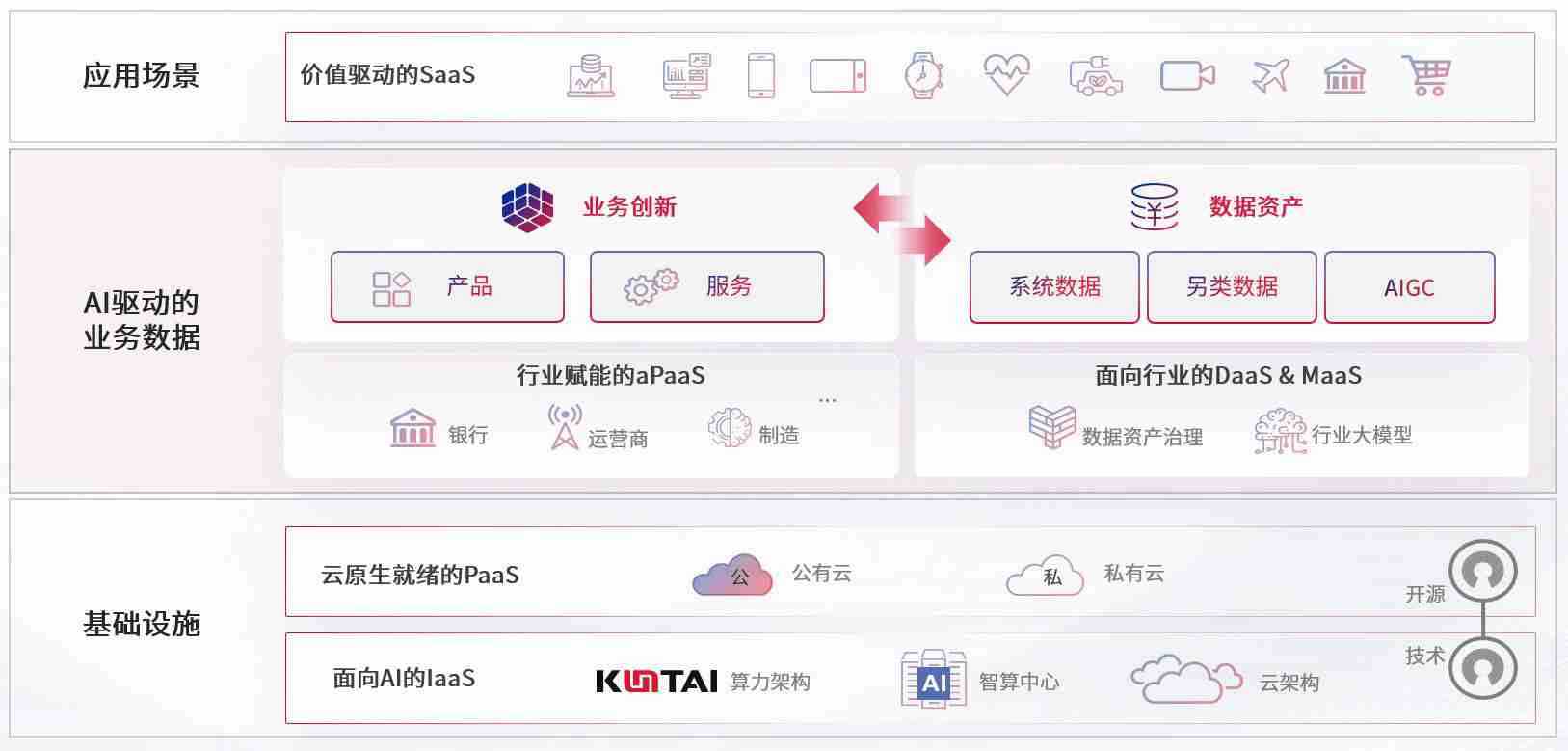 数字时代,,,围绕企业数字化转型的关键要素,,z6com尊龙数码开创性的提出数云融合战略和技术体系框架,,,着力在云原生、、、、数字原生、、、、AI原生和信创产业上架构产品和服务能力,,,,为处在不同数字化转型阶段的快消零售、、、汽车、、金融、、医疗、、政企、、、、教育、、、运营商等行业客户提供泛在的敏捷IT能力和融合的数据驱动能力,,构建跨界融合创新的数字业务场景和新业务模式,,,助力企业级客户建立面向未来的核心能力和竞争优势,,全面推动社会的数字化、、、智能化转型升级。。。。