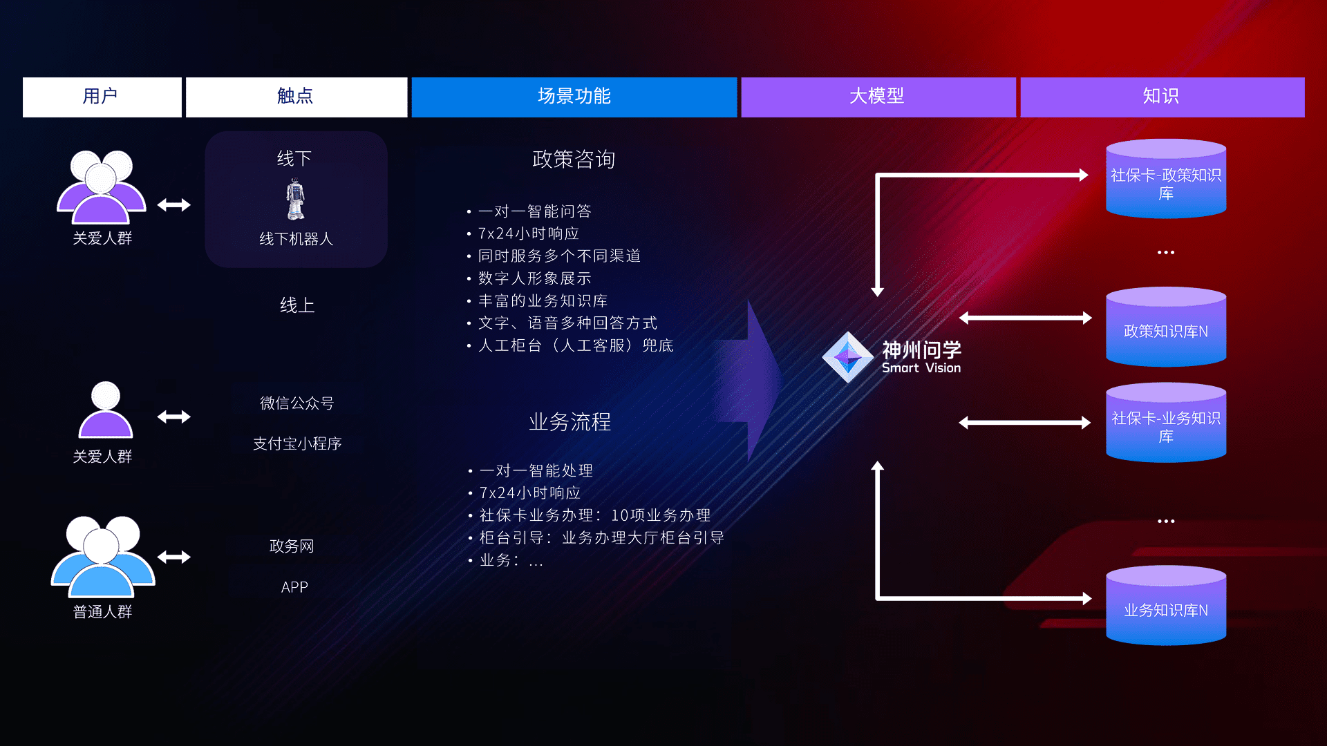 • 线上线下全覆盖:线上提供微信公众号、、、、支付宝小程序、、政务网、、app多种渠道,,与线下机器人形成完整服务体系。。。